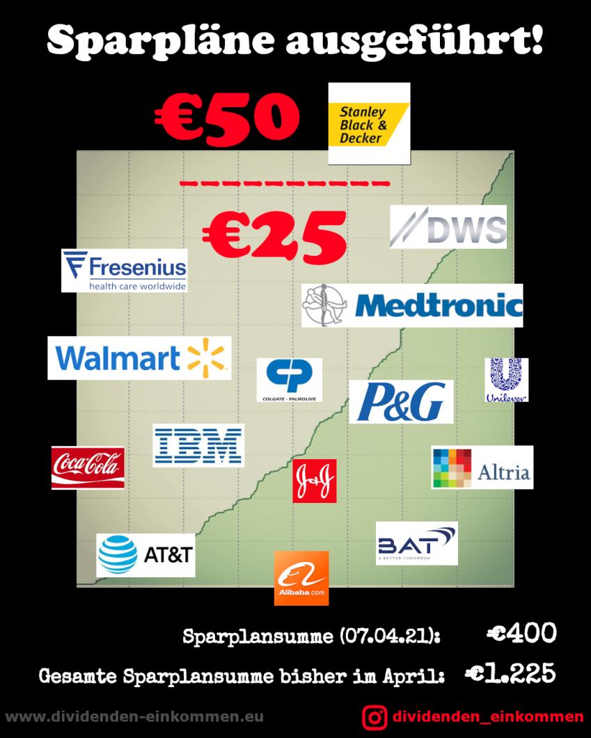 Insgesamt habe ich nun im Mai schon 1.225 Euro über Sparpläne in Aktien angelegt.