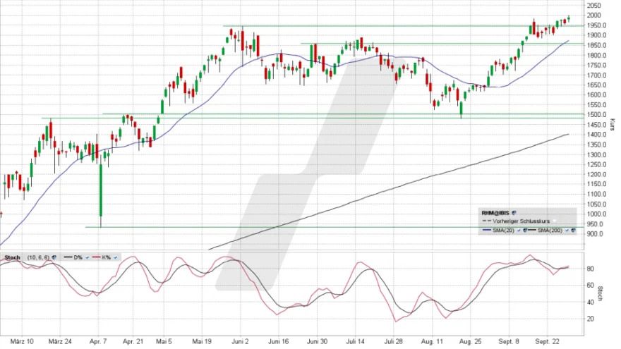 Rheinmetall ist mittlerweile teuer bewertet, aber die Analysten sind weiterhin bullisch. Die Aktie indes scheint mit der „magischen Marke“ von 2.000 Euro Probleme zu haben. Das könnte man als Warnsignal ansehen … aber es könnte am Ende auch auf das Gegenteil hinauslaufen..…...................