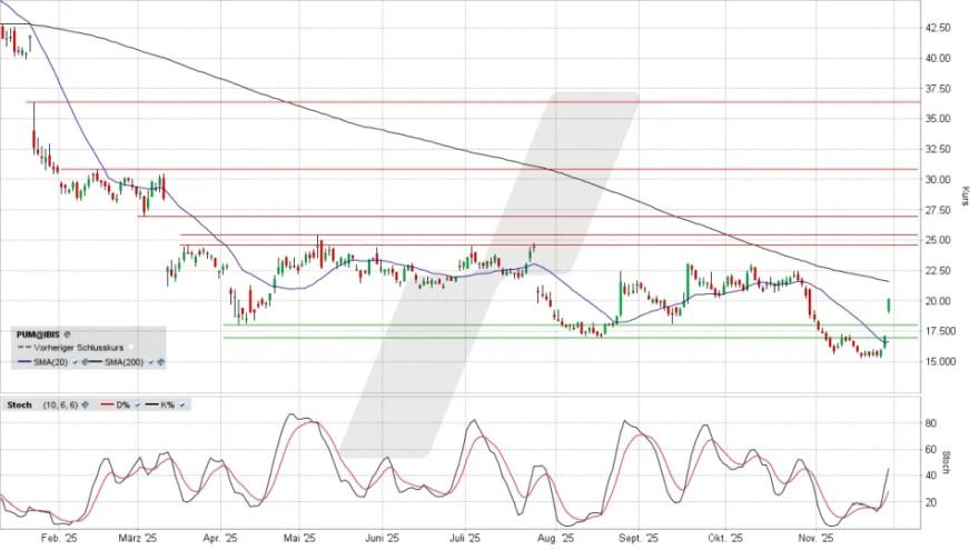 PUMA hat bislang ein fatales Börsenjahr hinter sich. Die Hoffnung, Marge und Gewinn würden sich zeitnah deutlich erholen, ist geplatzt. Einzig frischer Wind könnte die Sicht der Anleger auf die Aktie ändern. Etwas in dieser Art kam gestern. Aber was ließe sich davon halten?........