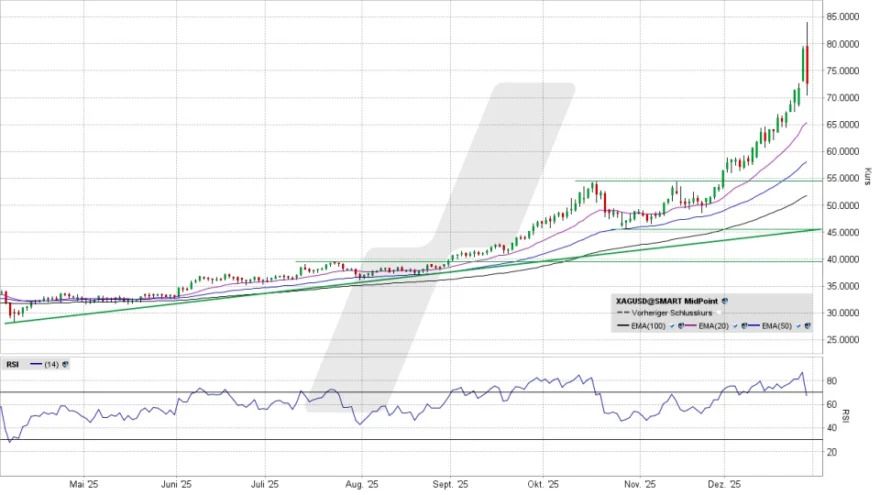 Am Freitag, als große Teile der Anleger noch den 2. Weihnachtsfeiertag feierten, stieg der Silberpreis um sagenhafte 8,8 Prozent auf ein neues Allzeithoch. Am Montag startete der Kurs erneut höher … aber dann begannen Verkäufe, die zu einer Lawine wurden. Was nun?..........