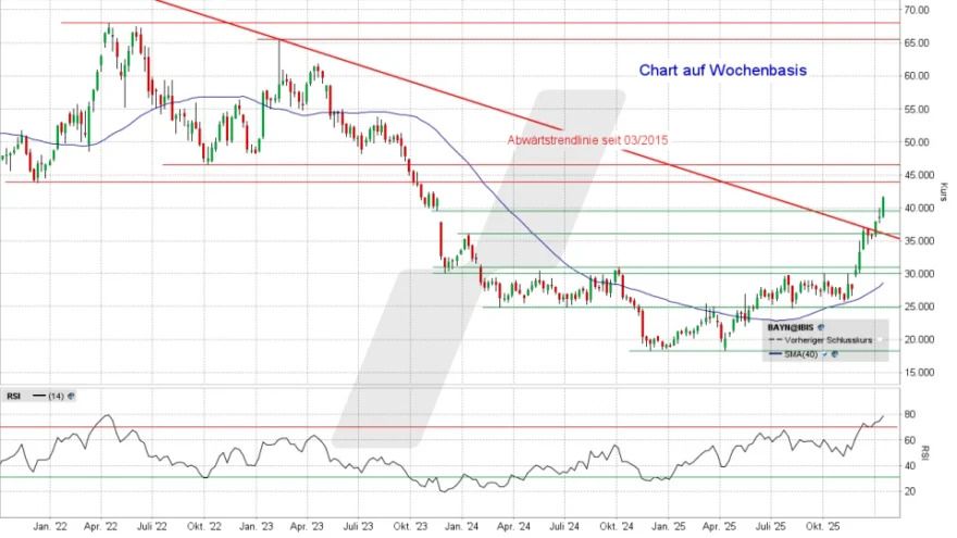 Seit Anfang Dezember nimmt die Bayer-Aktie eine Charthürde nach der anderen – und das gestern sogar gegen den Markttrend. Jahrelang stieg der DAX, aber Bayer blieb zurück. Jetzt hängt die Aktie den Index ab. Aber wie stabil ist der Boden, auf dem diese Rallye abläuft?.....