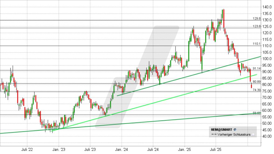Fast 50 % Kursverlust, gebrochene Unterstützungen, Aufwärtstrends und verunsicherte Anleger: Steht Nemetschek vor dem Abgrund?.............