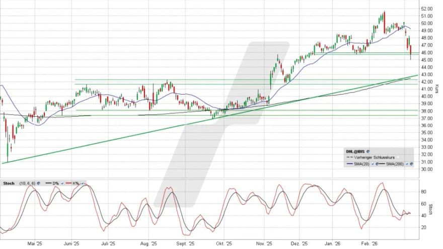 Der 2026er-Ausblick der DHL Group lag zwar unter den bisherigen Analysten-Erwartungen. Aber die Aktie landete dennoch bei den gestrigen DAX-Verlierern in einem schwachen Gesamtumfeld nicht an der Spitze. Ist das ein gutes Zeichen … oder nicht?..........