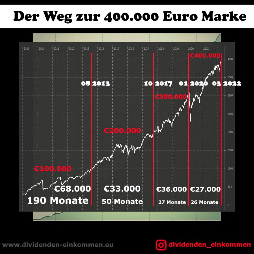 Im März 2022 war es soweit, mein Depot hat die Marke von 400.000 Euro übertroffen.